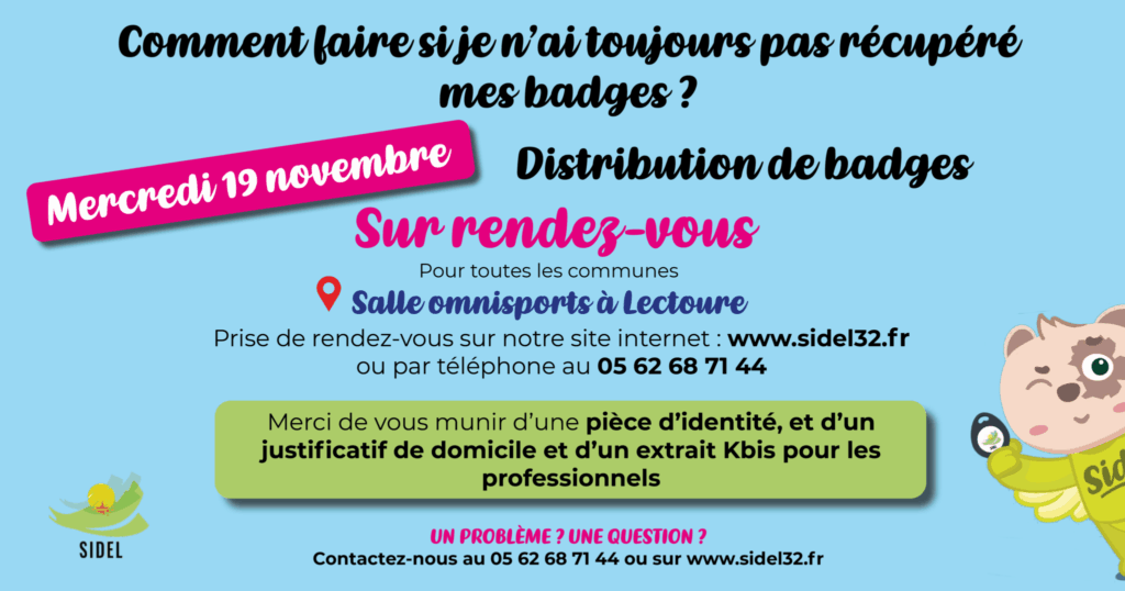 Depuis Février 2025 le SIDEL s’est déplacé sur les 4 communes de son territoire actuellement collectées en porte-à-porte : Lectoure, Fleurance, La Romieu et Saint-Clar pour distribuer les badges d’accès aux nouvelles colonnes d’ordures ménagères. Les permanences organisées sur ces 4 communes sont désormais terminées.